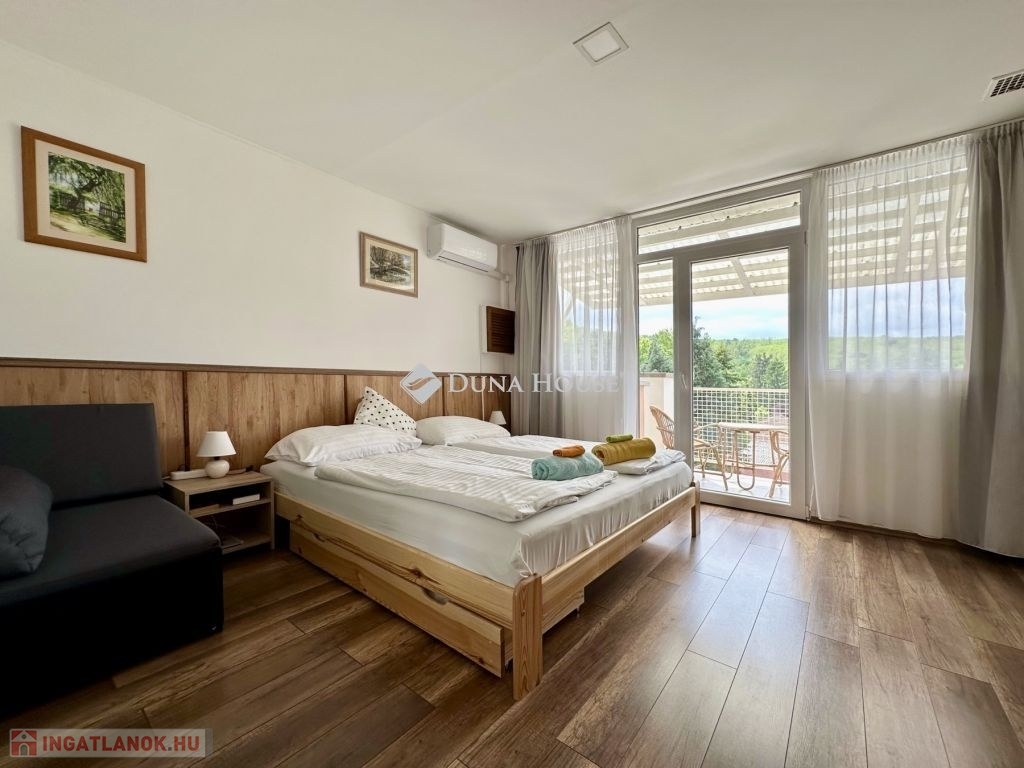 Működő panzió Abaliget szívében eladó – kiváló befektetési lehetőség!Abaliget központjában, a festői Mecsek ölelésében kínáljuk megvételre ezt a kivételes adottságokkal rendelkező, télen-nyáron üzemelő panziót, mely 7 vendégszobával és egy 90 m²-es privát lakrésszel várja új tulajdonosát.Főbb jellemzők:-7 igényesen felújított vendégszoba (mindegyik saját, tusolós fürdőszobával, hűtő-fűtő klímával)-90 m²-es lakás amerikai konyhás nappalival, hálószobával, fürdőszobával, déli-délnyugati tájolással-Szálláskapacitás: 21+2 fő-Hőszivattyús fűtés és melegvízellátás, kandalló, légfűtési lehetőség-5 kW-os napelemrendszer – energiatakarékos üzemeltetés-Alagsor: étkező, vendéglátó egység, Relax szoba (infraszauna, konditerem, tusoló)-Parkosított udvar fedett terasszal, dézsafürdővel, grillezőhellyel-7 gépkocsi számára térkövezett parkoló + privát garázsA panzió 2021-ben teljeskörű felújításon esett át, így az új tulajdonosnak már csak a működtetéssel kell foglalkoznia. A vételár a teljes bútorzatot és gépesítést is magában foglalja, így az ingatlan azonnal üzemeltethető.A közel 30 éve sikeresen működő családi vállalkozásként fenntartott panzió továbbvihető, így kiváló választás azok számára, akik kész üzleti lehetőséget keresnek. Ingatlan beszámitás, befektetési ingatlan, Balatoni nyaraló érdekes lehet! Irányár, megtekintés és további információ kérés esetén keressen bizalommal!