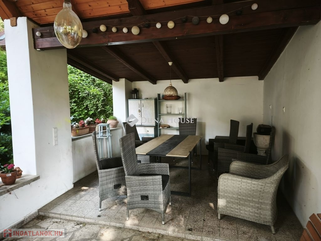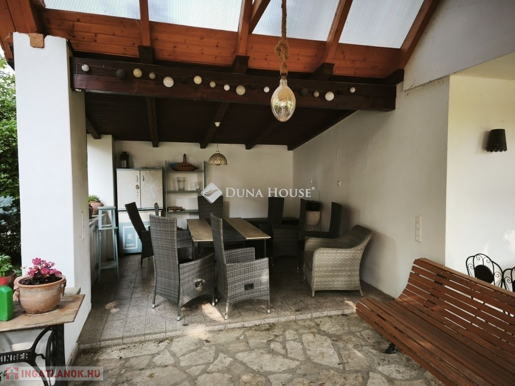 Az ingatlan polgári stílusban épült, parkosított kerttel és udvarral, fedett terasszal, teljesen felszerelt nyárikonyhával, tárolóval, garázzsal.