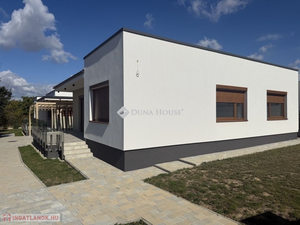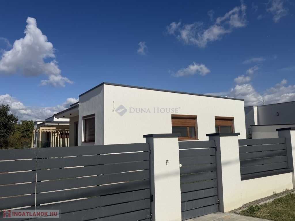 Pécsett Rózsadombon Újépítésű, A+-os minimál stílusú otthon!Egy modern 96m2-es, 3 szobás ingatlant kínálunk eladásra, melyben az amerikai konyha és a tágas nappali együtt teremtik meg az otthon meleg hangulatátAz inghatlan magas minőségben kivitelezett, minden apró részletre odafigyelve.Az alumínium elektromos redőnyök pedig nem csak a praktikumot szolgálják, de a modern megjelenést is erősítikEgy telken lévő 2 db önálló földszintes, modern, lapostetős prémium anyagokkal és műszaki megoldásokkal készült 2 db új lakóház,hőszivattyúval készített melegvízzel és padlófűtéssel, klímával és H tarifával ellátott lakóépület. Kertvárosi, családi házakkal körbevett, csendes zöldövezet.Hőszigetelt,színterezett aluminium redőnyökkel, háromrétegű hőszigetelt üvegezésű nyílászárókkal, saját pergolás gépkocsi beállóval, 8 m3-es földalatti csapadékvíztárolóval ellátva,Parkosított, 200m2-es, saját kerttel, ( utcafronti kerítés előtt 3 db gk. számára parkolási lehetőséggel) kaputelefonnal, távműködtetésű kapuval ellátott ingatlan.Az ingatlan újépítésű, a vételár után 5%-os ÁFA visszaigénylésére van lehetőség.Ne hagyja ki ezt a kivételes lehetőséget!Bővebb információért megtekintésért, várom hívását!