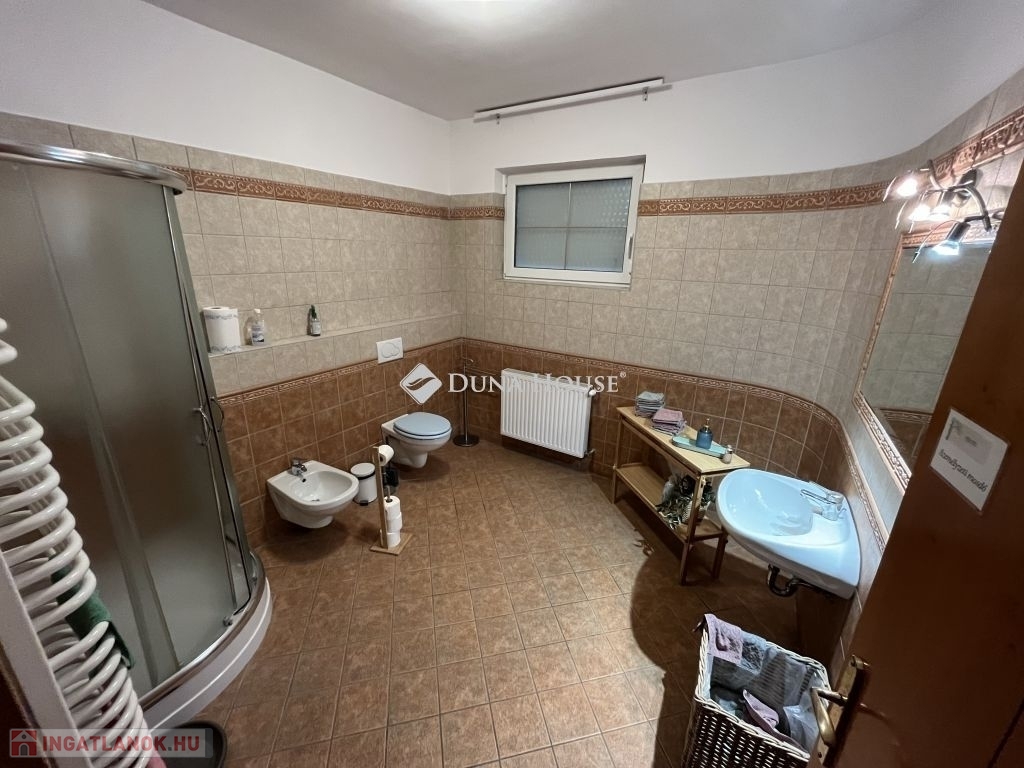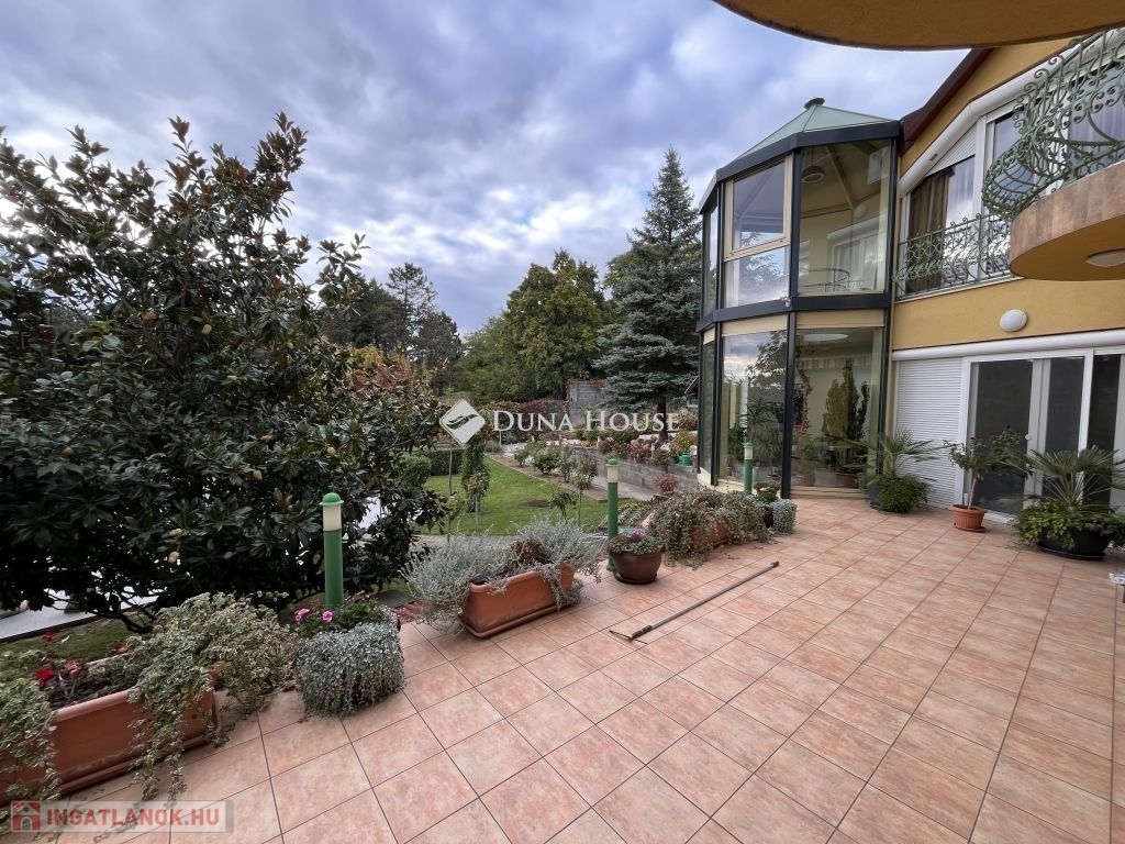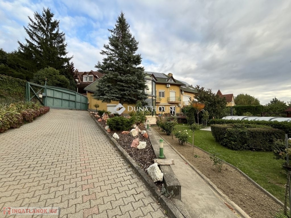 Pécs egyik legkülönlegesebb ingatlana a luxus és elegancia találkozásaEladásra kínálunk egy páratlan adottságokkal rendelkező ingatlant Pécs egyik legszebb pontján, 1695 m²-es telken, amely két főépületben, négy szinten, összesen 1727 m²-nyi exkluzív életteret foglal magába.A parkosított, közel 600 m²-es kert békéje és a Mecsekre nyíló panoráma olyan atmoszférát teremt, amely minden napot egy festménybe illő látvánnyal indít.A komplexum szíve a 71 m²-es, 7 méteres belmagasságú nappali, mely méltóságteljes tágasságával és természetes fényárjával az elegancia szimbóluma. A 16 hálószoba, 12 fürdőszoba, 3 gardrób, valamint 3 teljesen felszerelt konyha és étkező kényelmes, sokrétű használatot tesz lehetővé legyen szó családi otthonról, vagy prémium kategóriás boutique hotelről.A tökéletes kikapcsolódás helyszíne lehet a wellness részleg szaunával, vagy a fedett, 28 m²-es, panorámás medence. A sport szerelmeseit egy 55 m²-es fitneszterem várja, míg az elegáns klubhelyiség, 22 m²-es borospincével, valamint a 80 m²-es rendezvényterem összejövetelek, privát események ideális helyszíne lehet.Az ingatlan minden kényelmét biztosítja:4 saját parkoló az épület előtt,5 garázs,több mint 200 m² parkolófelület az ingatlan udvarán,mosókonyha, gépészeti terek, raktárhelyiségek,valamint 28 kW teljesítményű napelemrendszer, amely modern, energiahatékony működést garantál.A tágas, napfényes terek, a gondosan megtervezett belsőépítészeti megoldások, a prémium anyaghasználat és a megnyugtató természetközelség együttese valódi harmóniát teremt.Ez az ingatlan nem csupán egy otthon hanem életstílus. Egy különleges tér, ahol a luxus, a kényelem és a természet közelsége tökéletes egyensúlyban találkozik.Fedezze fel Pécs legexkluzívabb ingatlanát egy helyet, ahol minden nap a tökéletesség érzésével kezdődhet.