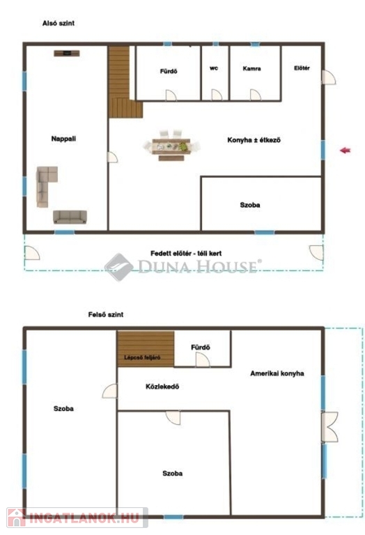 Az ingatlan kétgenerációs elrendezésre is alkalmas, külön bejárat megoldható,vagy akár kiadható a felsõ szint.