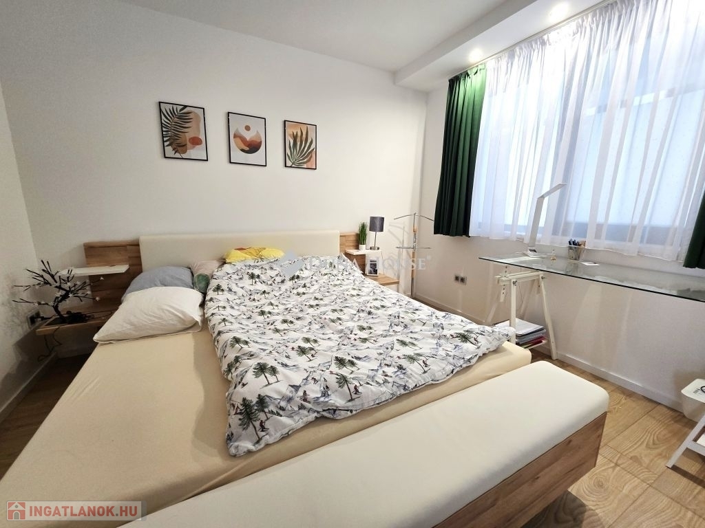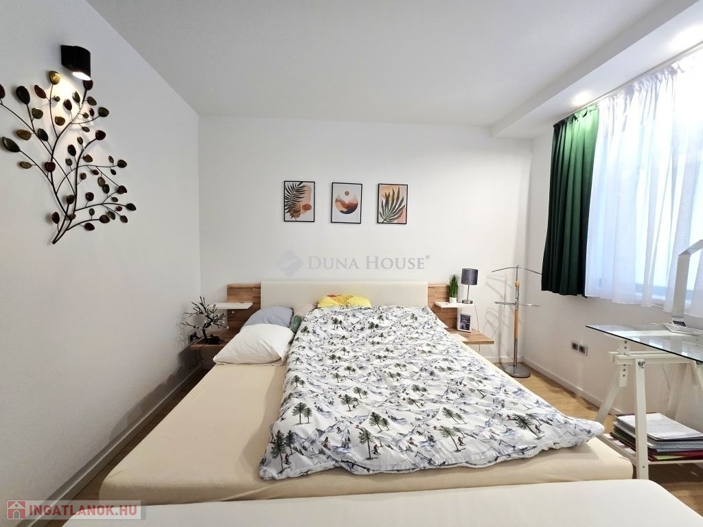 KIVÁLÓ BEFEKTETÉS! Pécs Egyetemvárosi részén, a műszaki kar mellett, Golden corner társasházban eladó egy 2023-ban épült, V/2. em-i, 40 nm-es, amerikai konyha-nappali+1 szoba elosztású, újszerű állapotú, klímás, PANORÁMÁS, egyedi mérős tégla lakás. A lakás újszerű-, lifttel és kamera rendszerrel felszerelt épületben található! Az ingatlan tehermentes és gyorsan költözhető!A beépített bútorok gépesítve a vételár részét képezik, a többi bútor pedig külön alku tárgya!I.ár: 54,9M FtA LAKÁSHOZ TARTOZIK EGY TEREMGARÁZS BEÁLLÓ ÉS EGY SAJÁT TÁROLÓ IS, EGYÜTTESEN +6M FT ÁRON!