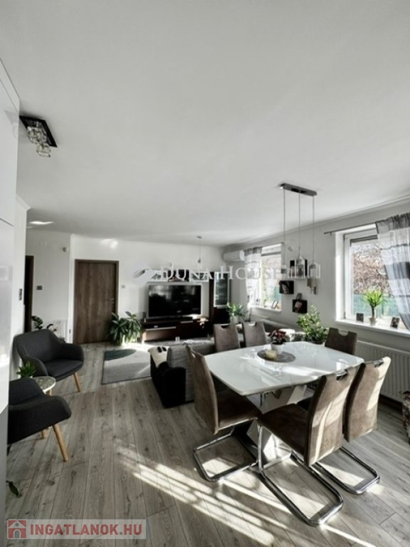 Pécs városrészében, a Rigóder közelében, zárt lakóparkban eladó egy földszinti, kertkapcsolatos lakás.Az ingatlan egy 2006-ban épült, tégla társasház földszintjén található, 70 m² alapterületű, elrendezése amerikai konyhás nappali, két hálószoba, előszoba, fürdőszoba WC-vel, valamint terasz. A lakáshoz kb. 60 m²-es, saját használatú kert tartozik, mecseki kilátással.A lakás 2022-ben teljes körű belső felújításon esett át, amely magában foglalja a belső nyílászárók cseréjét, a fürdőszoba felújítását, a burkolatok cseréjét, valamint az új konyhabútor beépítését. A konyhában beépített gépek találhatók. A nappali bútorzata és az előszobai beépített szekrény a vételár részét képezi.A fűtés központi rendszerű, a nappaliban és az egyik hálószobában hűtő-fűtő klíma került felszerelésre. Az ingatlan műanyag, szigetelt nyílászárókkal rendelkezik, redőnnyel és szúnyoghálóval ellátva.A lakópark csendes környezetben helyezkedik el, a közelben elérhetők alapvető szolgáltatások és tömegközlekedési lehetőségek.A jelenlegi tulajdonosok a lakóparkon belül garázshelyeket bérelnek. A bérlés nem része az ingatlannak, azonban jelenleg parkolási lehetőség rendelkezésre áll.