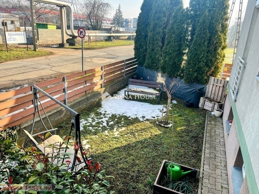 A lakás része egy garázs és egy tároló is, valamint egy kellemes, saját 50 m²-es kertkapcsolat biztosítja a nyugodt kikapcsolódást.