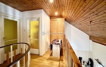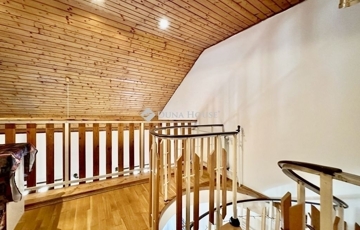 A földszinten előszoba, fürdőszoba, konyha és tágas nappali, melyben a stabil tölgyfa csigalépcsőn keresztül az emeletre érve két szoba, a galérián beépített tároló szekrény található.